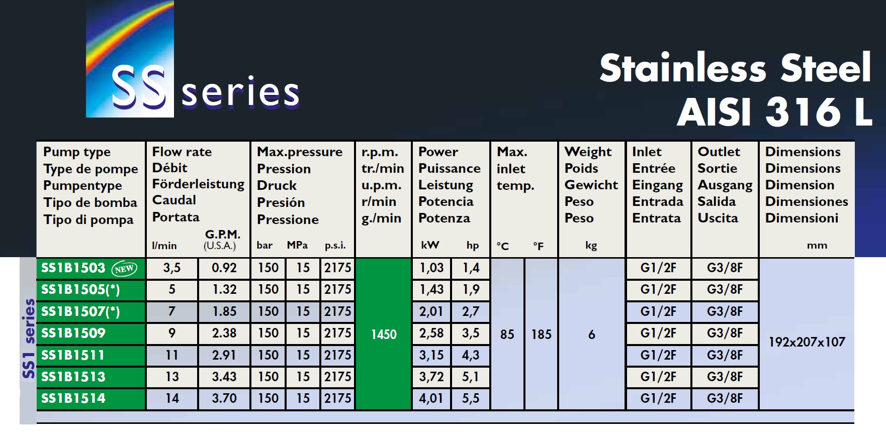 壓力:150BAR,流量:3.5-14L/MIN,轉(zhuǎn)速:1450RPM,液力端316L不銹鋼