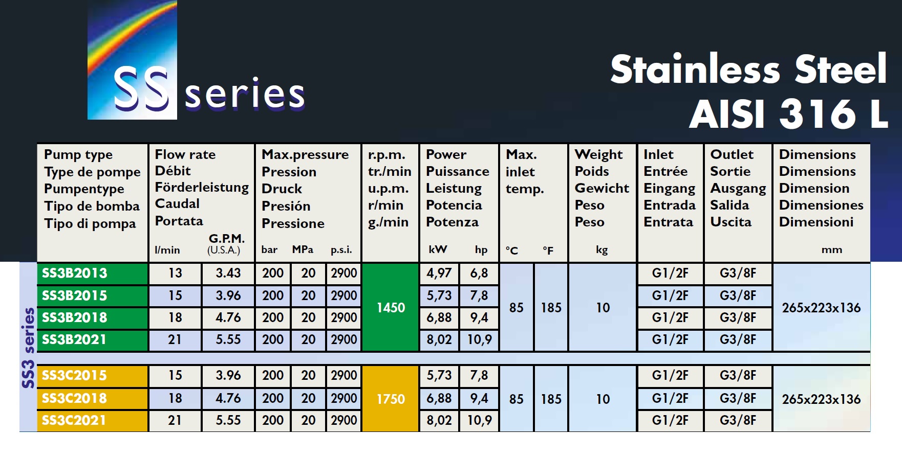 壓力:200BAR,流量:13-21L/MIN,轉(zhuǎn)速:1450RPM,功率: 24.07-8.02KW,液端:316L