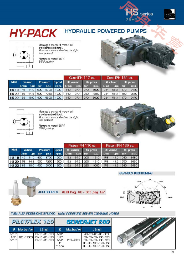參數(shù):400bar,68L/min;500Bar,56L/min;600Bar,45L/min;